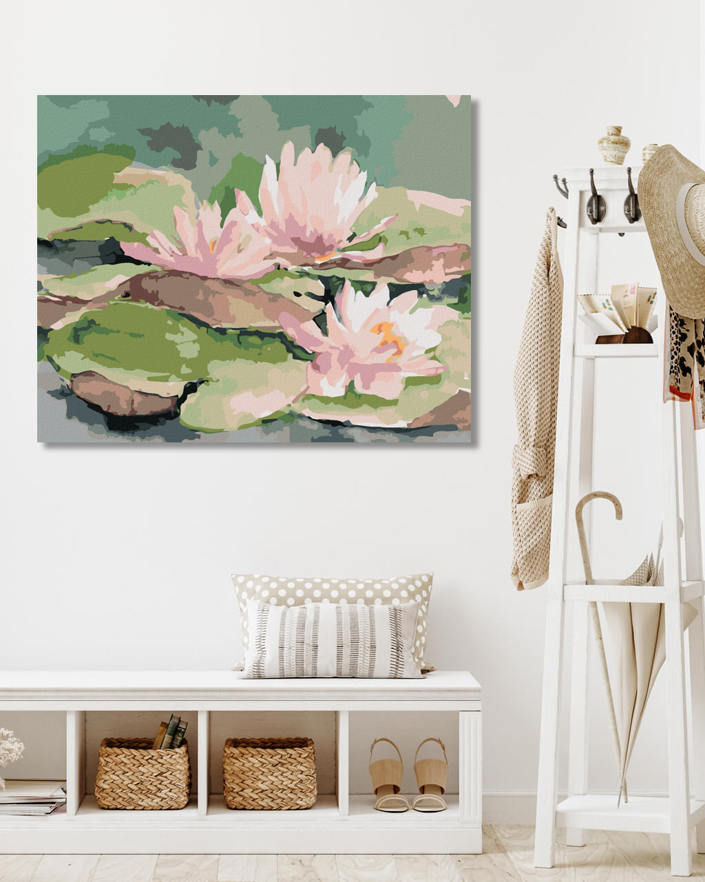 диамантени гоблени - РОЗОВИ ЯПОНСКИ ВОДНИ ЛИЛИИ
