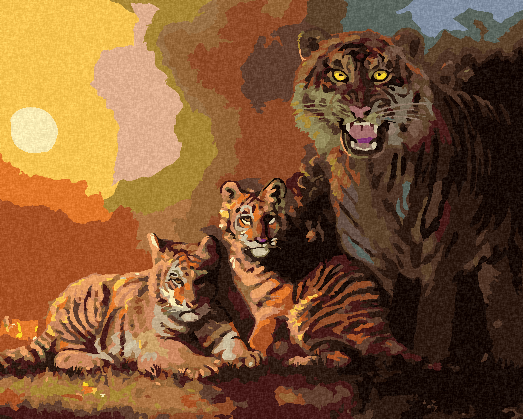 диамантени гоблени - ТИГЪР С МАЛКИ И ЗАЛЕЗ (Д. РЪСТИ РЪСТ)