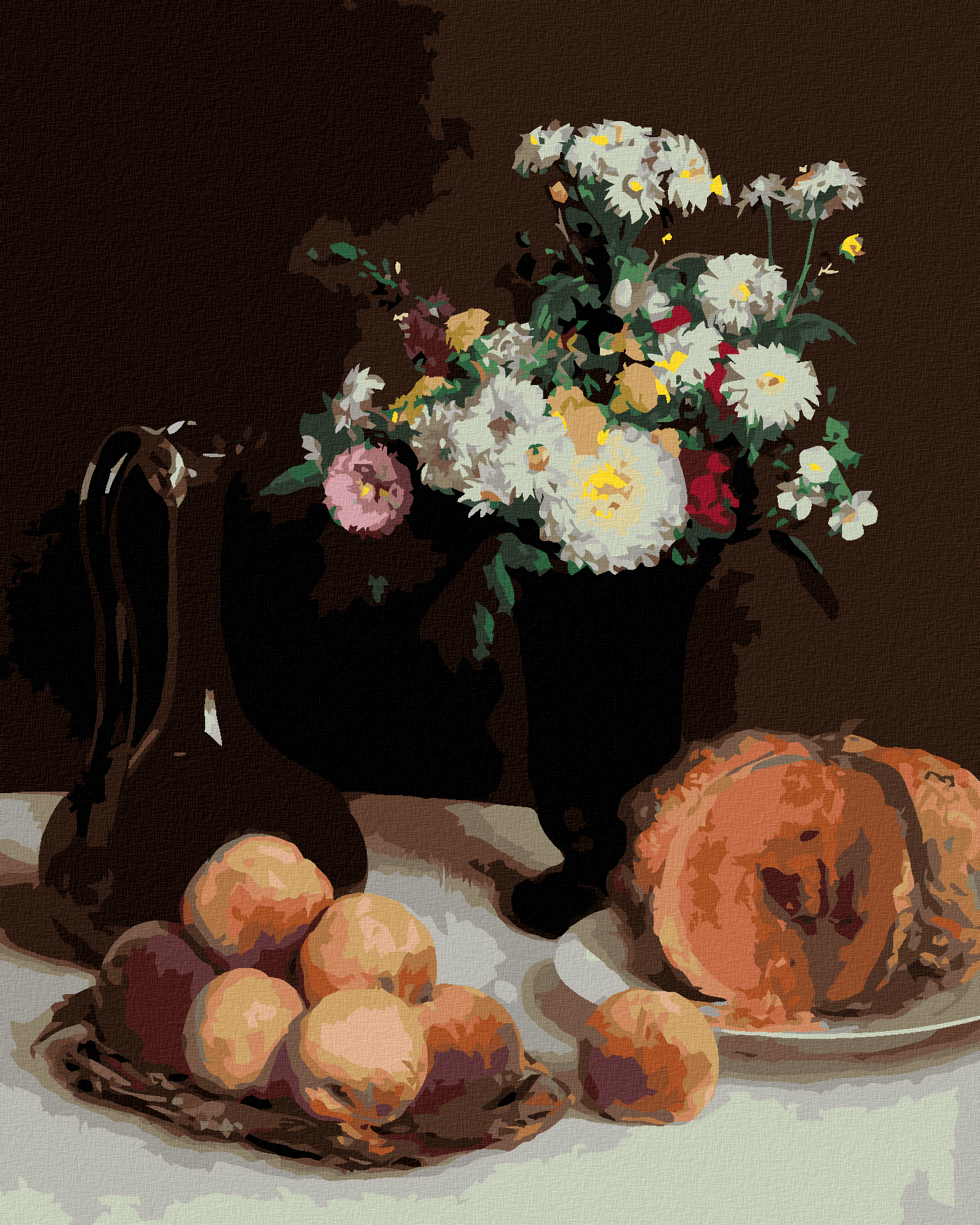 диамантени гоблени - НАТЮРМОРТ С ГАРАФА, ЦВЕТЯ И ПЛОДОВЕ (АНРИ ФАНТЕН-ЛАТУР)