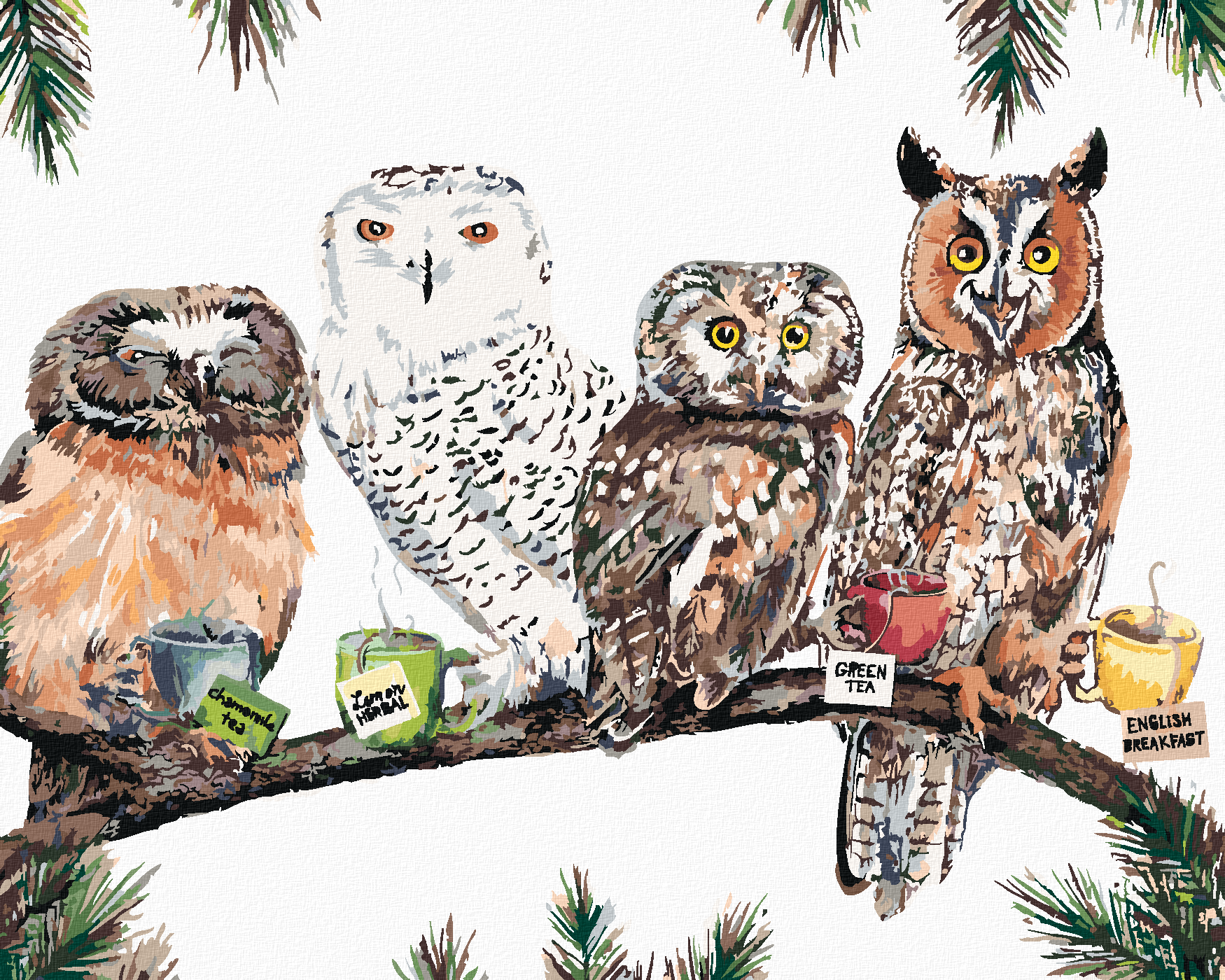 диамантени гоблени - СОВИ И ЧАЙ (ХОЛИ СИМЕНТАЛ)