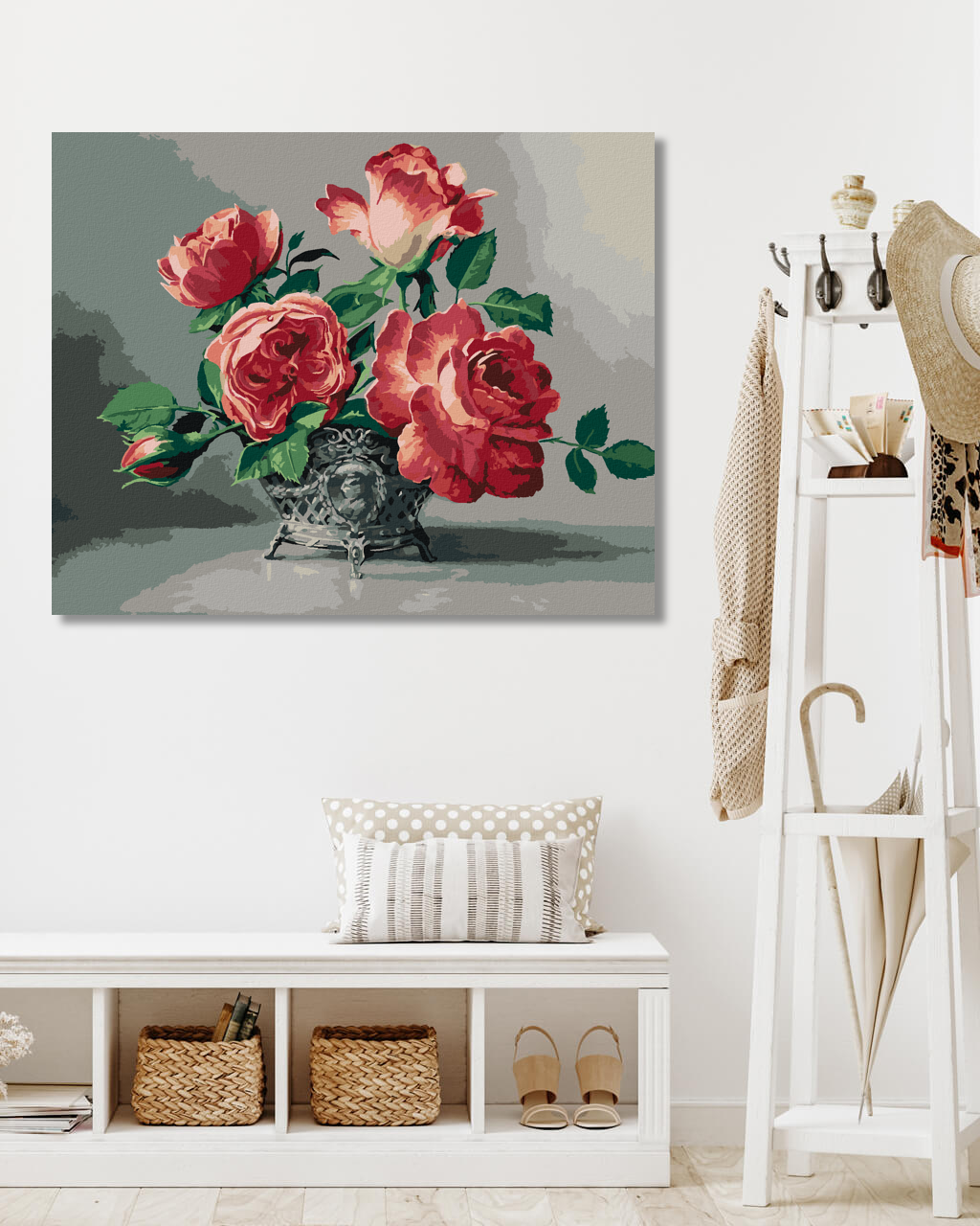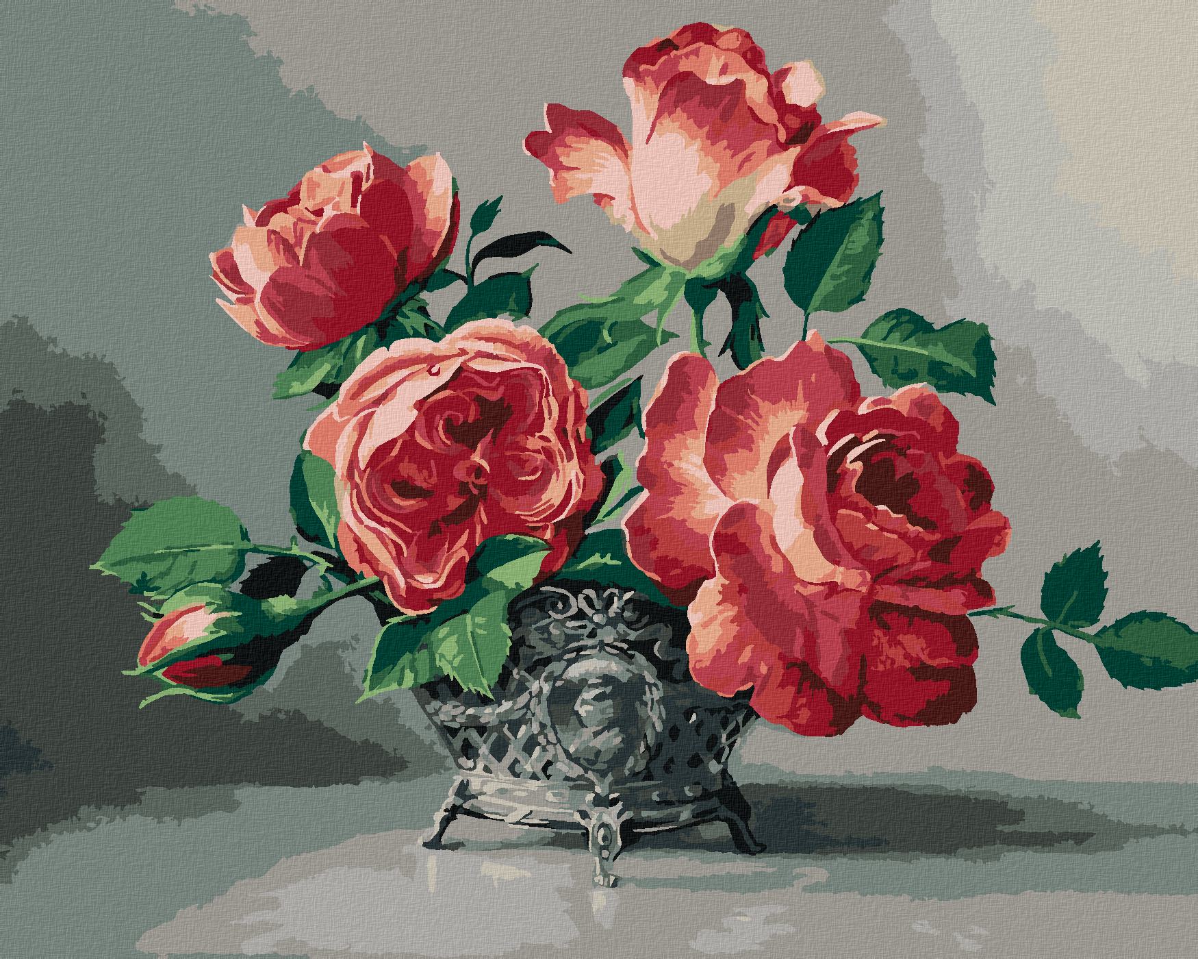 диамантени гоблени - НАТЮРМОРТ ОТ РОЗОВИ РОЗИ В УКРАСЕНА ВАЗА (ПИТЕР ВАГЕМАНС)