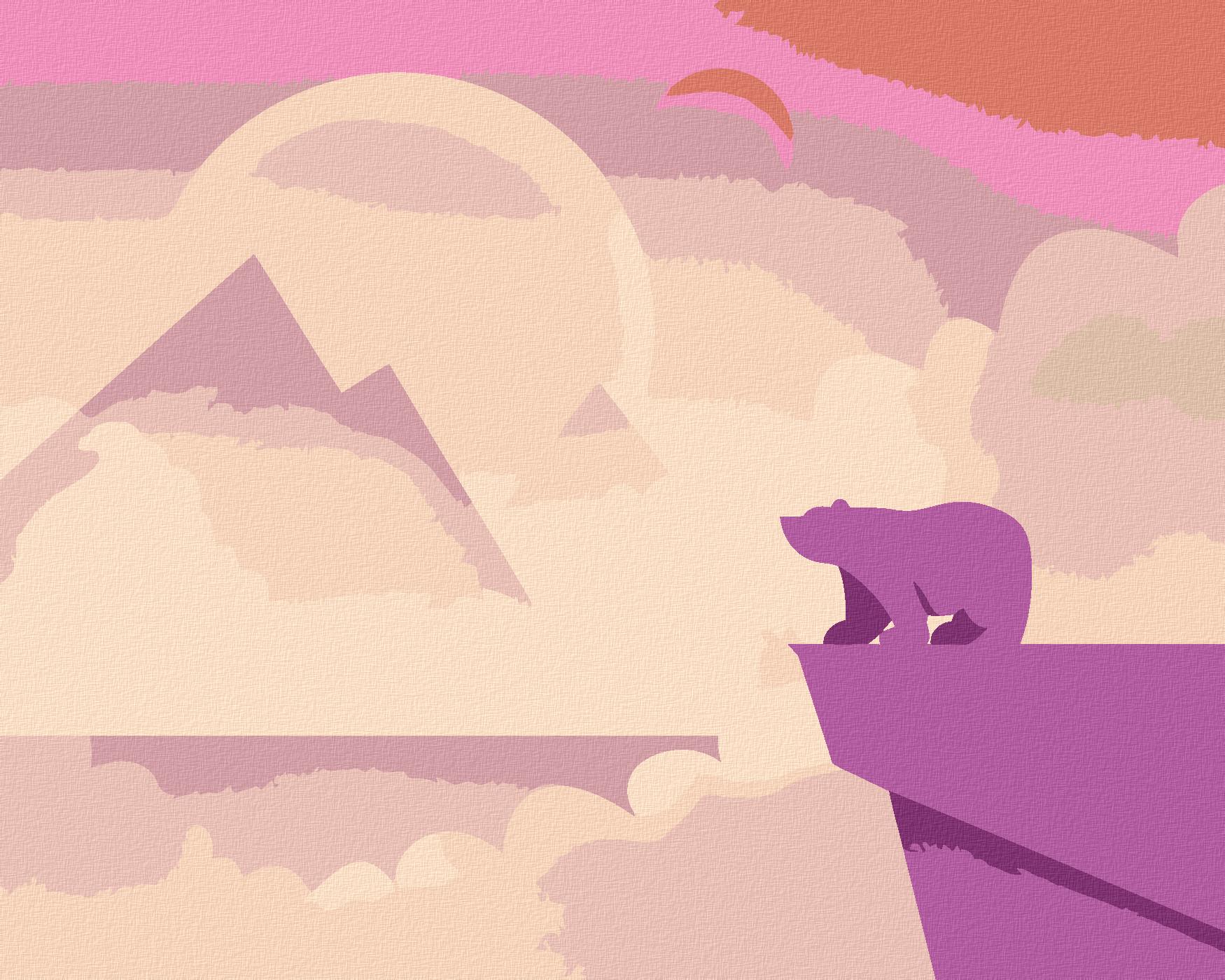диамантени гоблени - МЕЧКА И РОЗОВ ПЕЙЗАЖ
