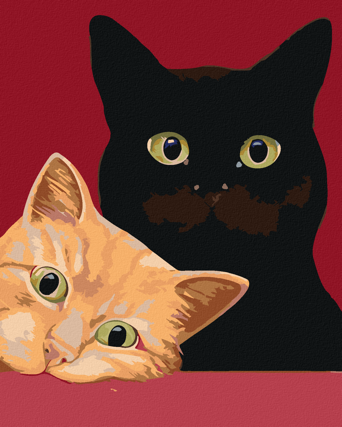 диамантени гоблени - ДВЕ КОТКИ НА ЧЕРВЕН ФОН