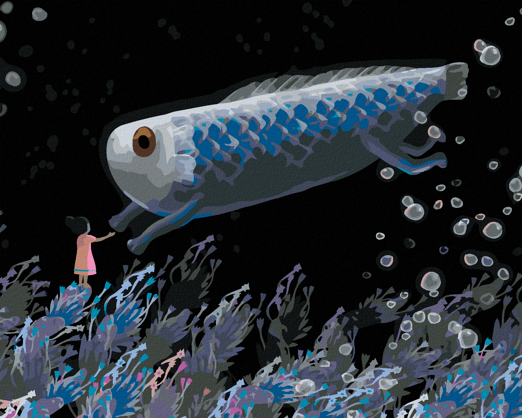 диамантени гоблени - МАЛКО МОМИЧЕ С ГИГАНТСКА РИБА