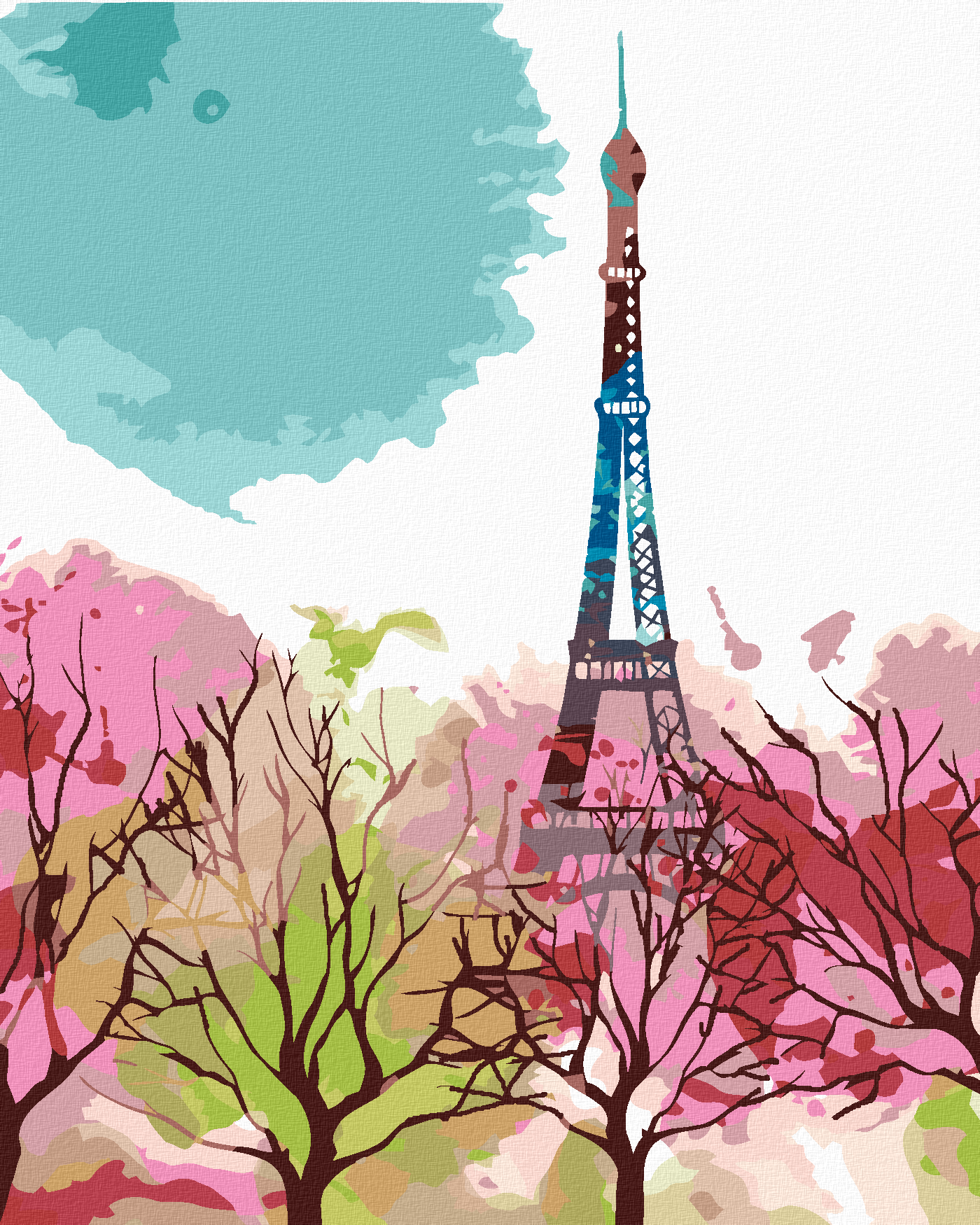диамантени гоблени - АБСТРАКТНА АЙФЕЛОВА КУЛА И ДЪРВЕТА